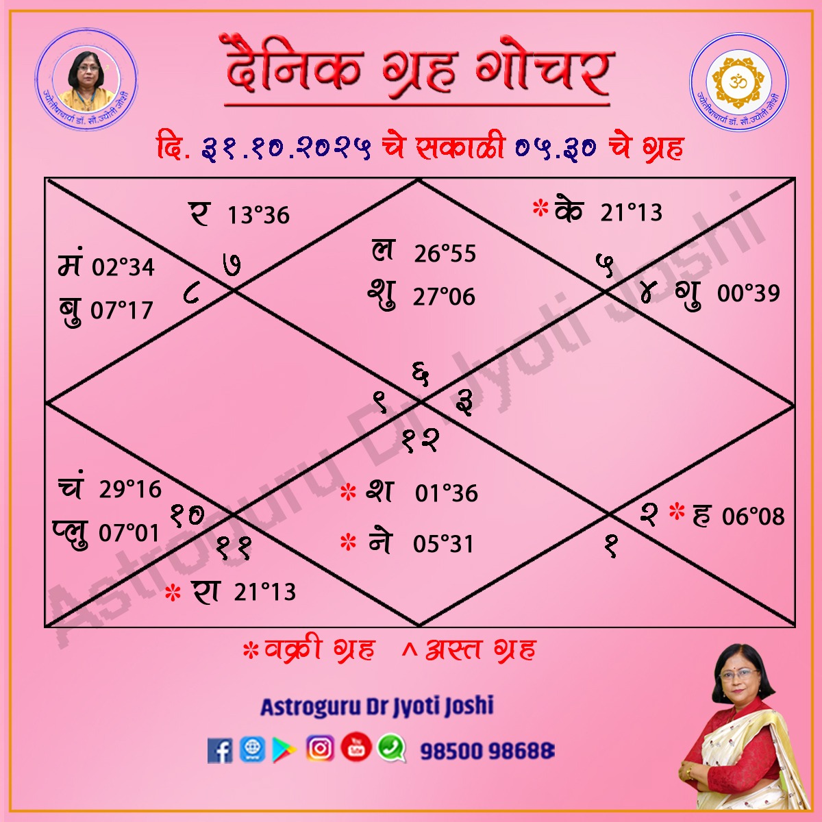 आजचा आपला दिवस सुखमय, आनंदमय, भाग्यमय असेल. आज नशिबाची व भाग्याची साथ मिळेल. नोकरीनिमित्त काही नवीन लोकांच्या गाठीभेटी होतील. आजच्या दिवसाचा सदुपयोग करून घ्या.