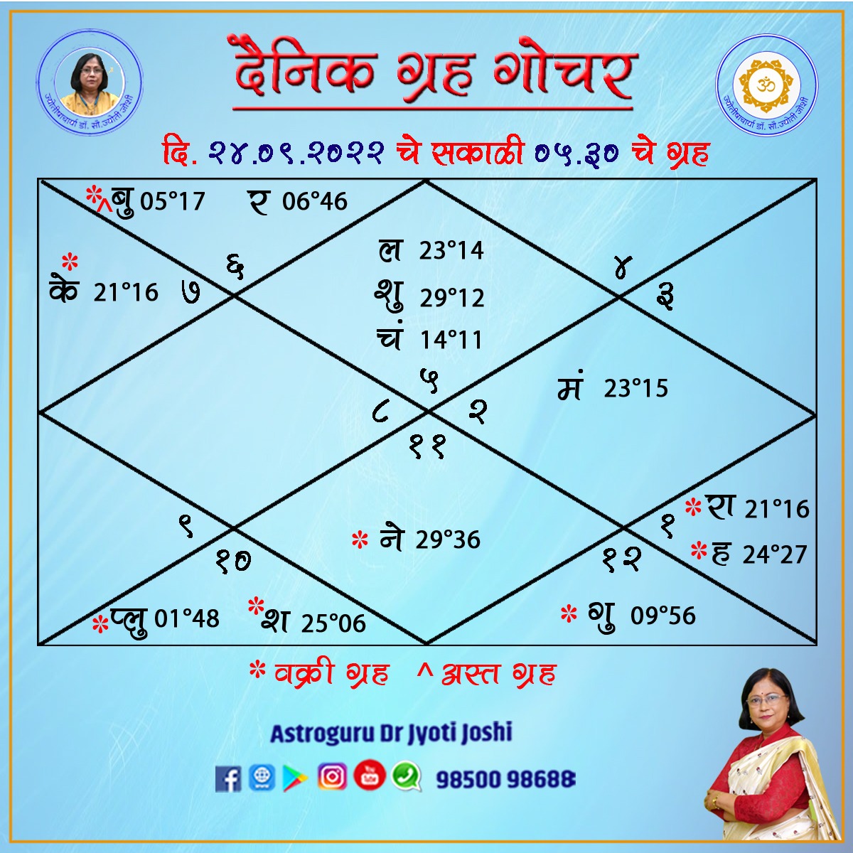 इतके दिवस घेत असलेल्या मेहनतीचे, परिश्रमाचे शुभ फलित आज आपणास प्राप्त होईल. बऱ्याच दिवसांपासून मनात असलेल्या इच्छा- आकांक्षांची आज प्राप्ती होईल.