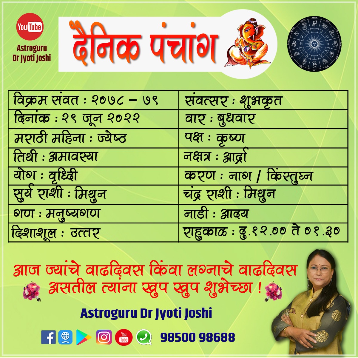 बुधवार, दि. २९ जून २०२२